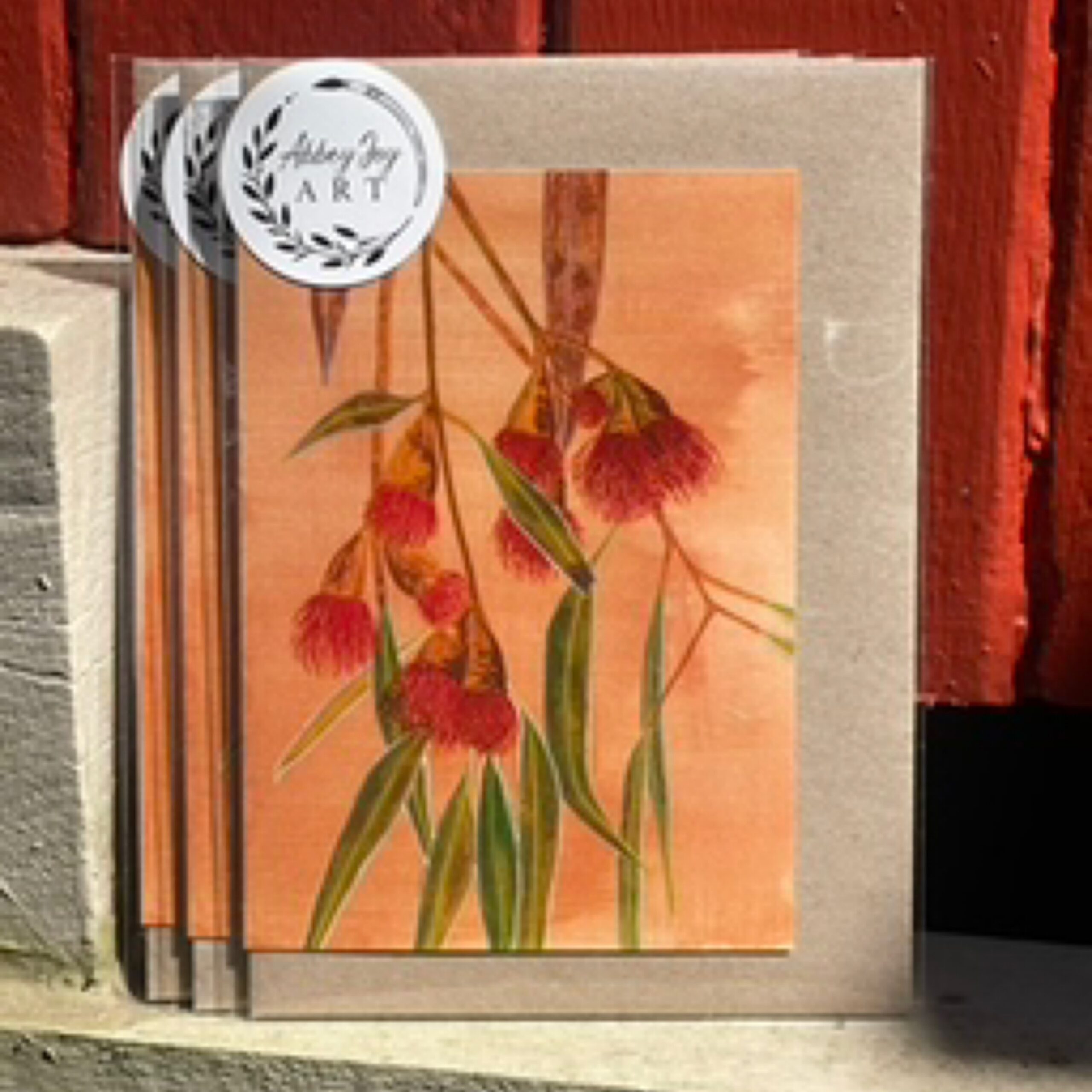 This pinted card by local watercolour artist Abbey Wilson, features a vibrant flowering gum nut design, showcasing high-quality printing and a unique floral theme inspired by FNQ. Perfect for any occasion, this card combines artistry with local charm.