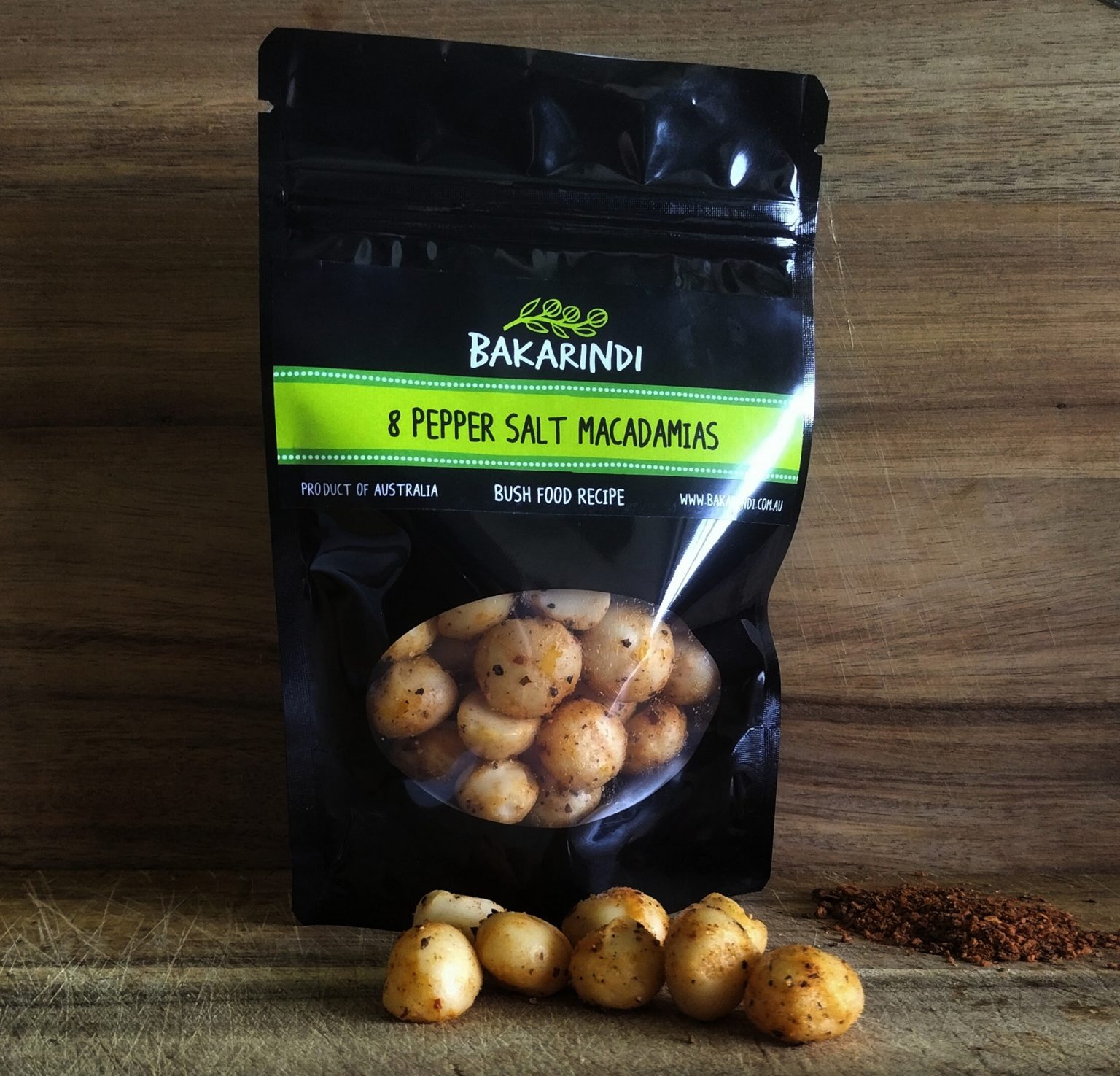 A unique seasoning blend featuring premium macadamias, eight varieties of pepper, and a touch of salt. Perfect for enhancing meats, vegetables, or any dish requiring a bold, flavorful twist.