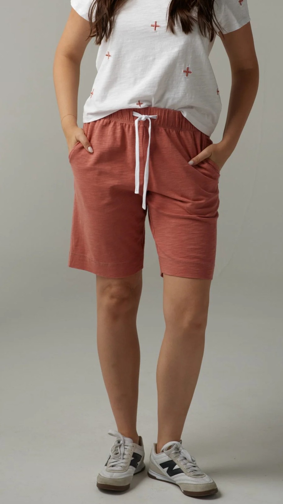 100% Cotton, straight leg, elasticated waist, cross embroidery, waistband external white cotton draw, side seam pockets