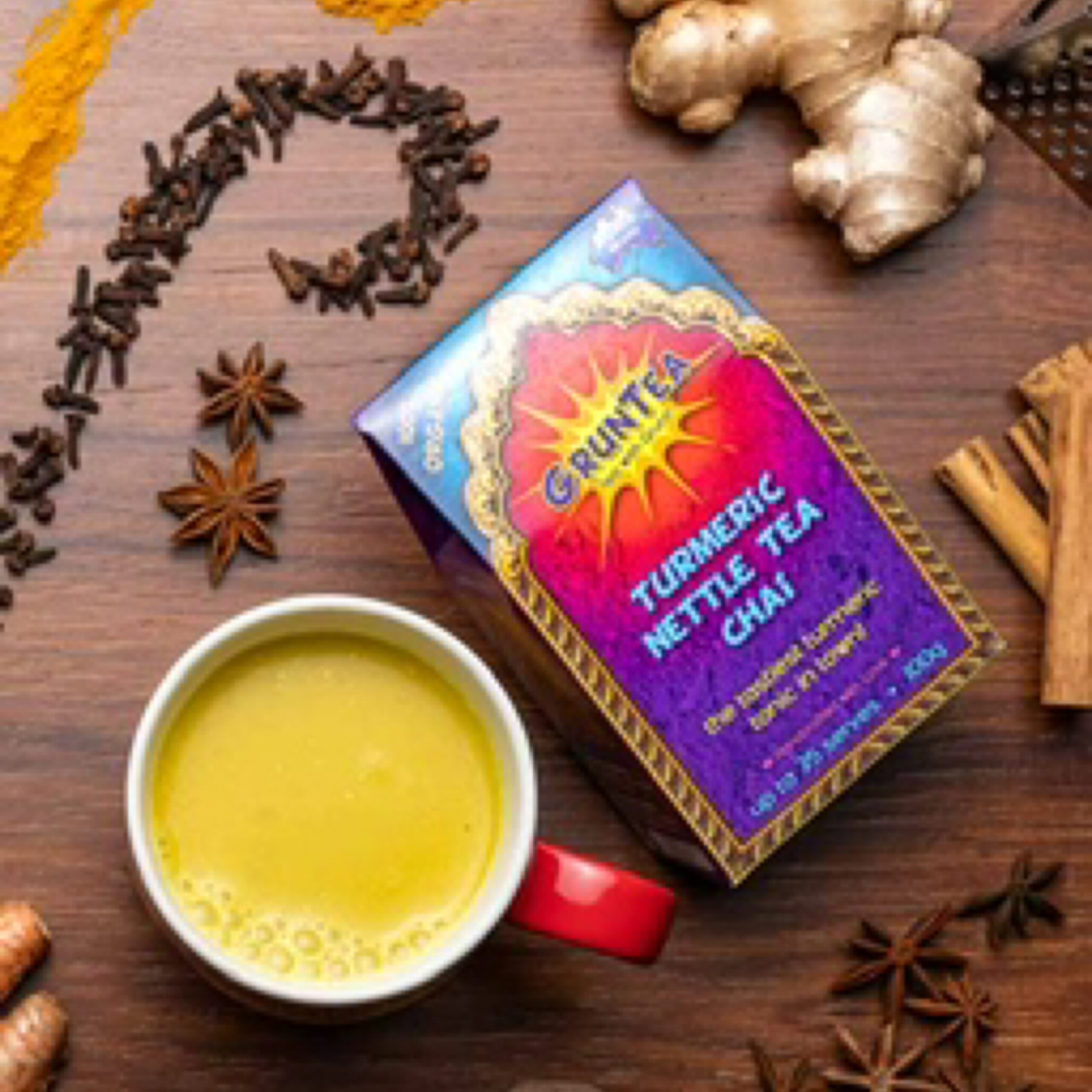 Gruntea Turmeric Nettle Tea Chai is a 100% organic blend, handmade in Ravenshoe, Far North Queensland. This 100g tea combines the earthy flavors of turmeric and nettle with a comforting chai spice mix. Crafted with care, it supports immunity and wellness while offering a naturally spiced tea experience. Proudly Australian-made, it uses sustainably sourced ingredients to ensure quality and freshness in every cup.