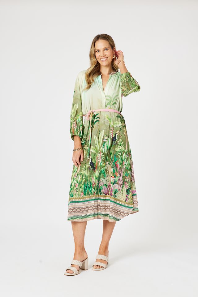 Colour, Charisma & a Touch of the Tropics: Hammock & Vine Toucan Midi Dress – Green/Pink