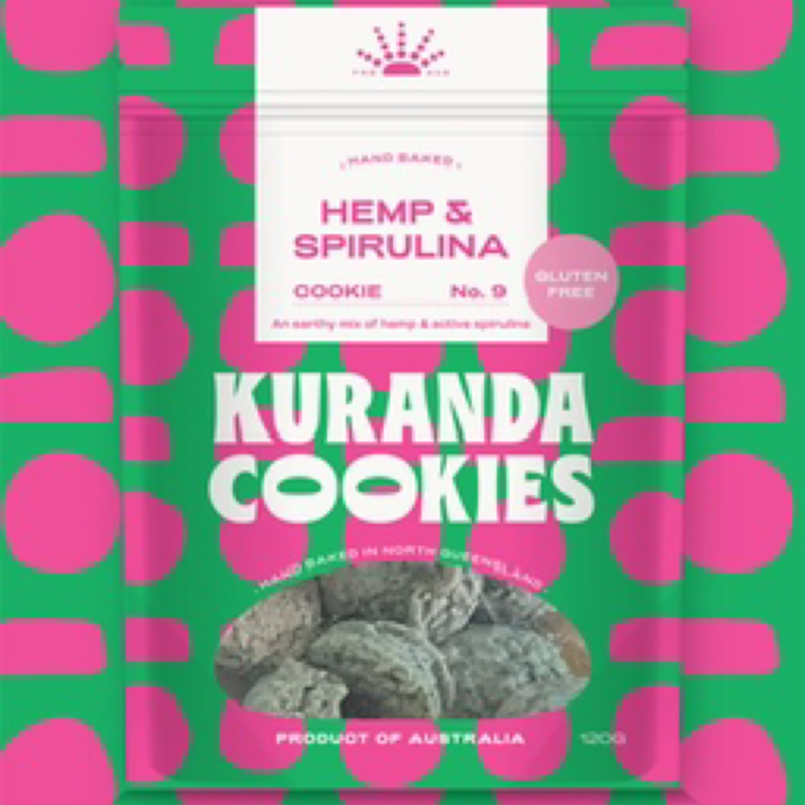 Kuranda Cookies' Hemp and Spirulina cookies combine nutrient-rich hemp seeds and spirulina for a unique flavor and a source of natural health benefits. Handmade with real butter, no preservatives, free-range eggs, and local ingredients since 1992.