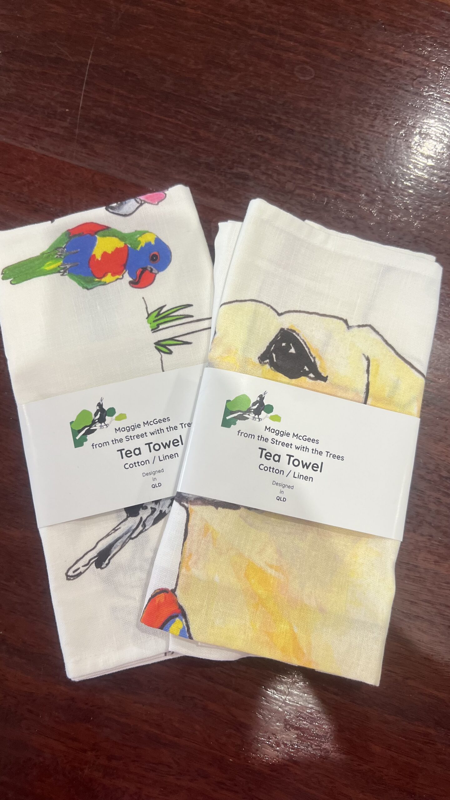 This tea towel features a unique design inspired by the beloved 'Maggie McGees – From The Street With The Trees' story. Made from high-quality material, it is both functional for kitchen use and decorative for display.