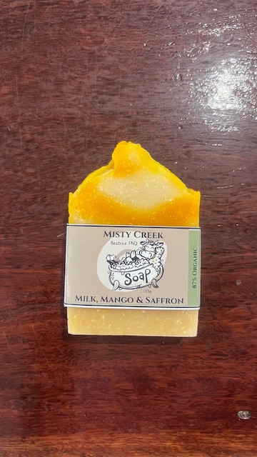 Misty Creek Beatrice FNQ Soap features 87% organic milk combined with mango and saffron for a nourishing and aromatic cleanse. This 135g handmade soap is crafted for gentle care and natural freshness.