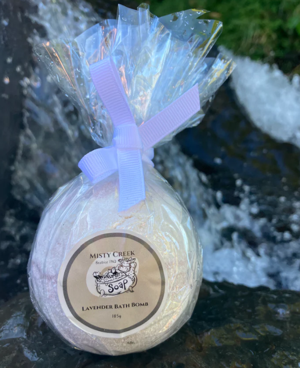 The Misty Creek Beatrice FNQ Lavender Bath Bomb (185g) offers a soothing lavender scent and moisturizing ingredients, creating a relaxing bath experience. Perfect for unwinding after a long day.