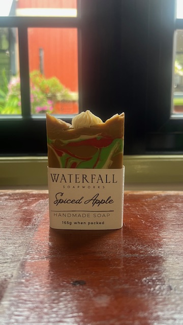 Waterfall Soaps Spiced Apple, a 165g handcrafted soap, is made with natural ingredients and features a warm, aromatic scent perfect for the holiday season. Carefully created in Kairi, it brings a festive touch to your skincare routine.