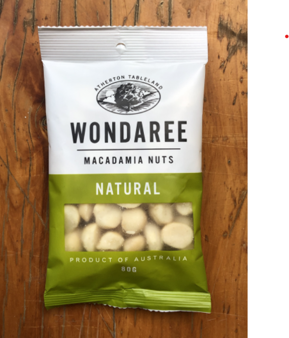 Wondaree Macadamia Nuts – Natural 80g are locally grown on the Atherton Tablelands in Far North Queensland, ensuring premium quality and freshness. These natural macadamias are carefully harvested and processed to retain their rich, buttery flavor and satisfying crunch. Free from additives, they make an excellent snack or ingredient for cooking and baking. Packaged in a convenient 80g size, they are ideal for on-the-go enjoyment or adding a gourmet touch to your recipes. Experience the taste of locally sourced, natural macadamias.